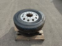New - Take Off - Continental 11 R 22.5 Tires on Aluminum Rims - Set of 2